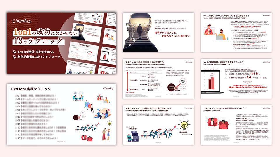 今回紹介するのは、1on1の導入前、導入後を問わず、1on1の効果を最大限得るための13の1on1テクニックです。